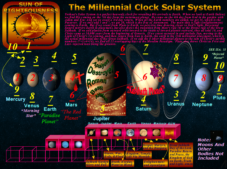 All hisorical events were purposely worked together to run like a superb watch, or an alarm clock for the world, and all appointed times of the past, in our collective history, serve to encourage believers to look to the time of Christ’s coming- His Great Sabbath millennium. The planets have their place in witnessing to the same history of redemption and arrivals of Christ. Each planet symbolizes a millennium of biblical history, but we must learn the prophetic signs of the times before they can disclose their panoramic confession and profess these arrivals. After all, the solar system is indeed a system, timely like a watch, and all true systems have overarching objectives, even if the paradigm of God’s evidences is currently shrouded in mortal ignorance.