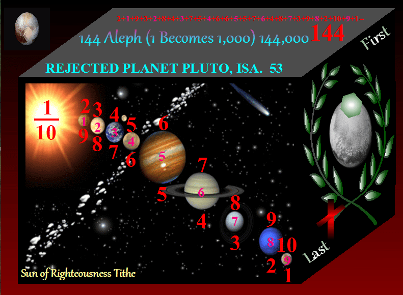 Moreover, the sun- symbolic of God in Scripture- is the first and central heavenly body in our solar system, which God utilized to formed the system, but it is the last from the outward bounds of interstellar space; it is the greatest by all accounts in size and brightness, but all other planets and their moons orbit closer to anything coming into our system. Counting the nine planets, Sun is the 10th at the center. Likewise, Pluto- the least among these- is both the first and the last of the planetary spheres orbiting the sun- depending upon which of the two spheres we start at.