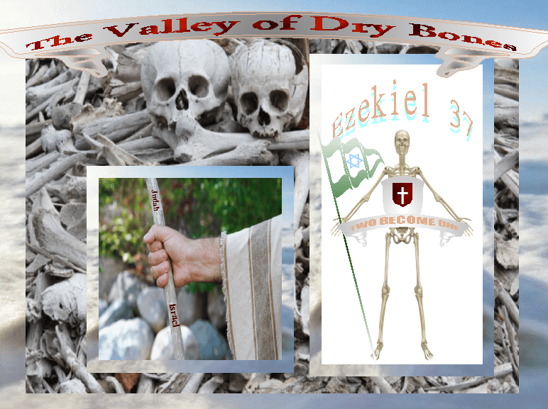 Further, Ezekiel’s vision of the valley of bones and message of two sticks united as one, many televangelists and theologians have mistakenly counted accomplished with Jews returning to recreate the nation of Israel, after their Diaspora (c. 70 C.E./A.D. to 1917 C.E./A.D.). The prophetic message, however, concerns the two ancient nations, composed of all twelve Israelite tribes and raised from the dead as nations, united into one Kingdom.